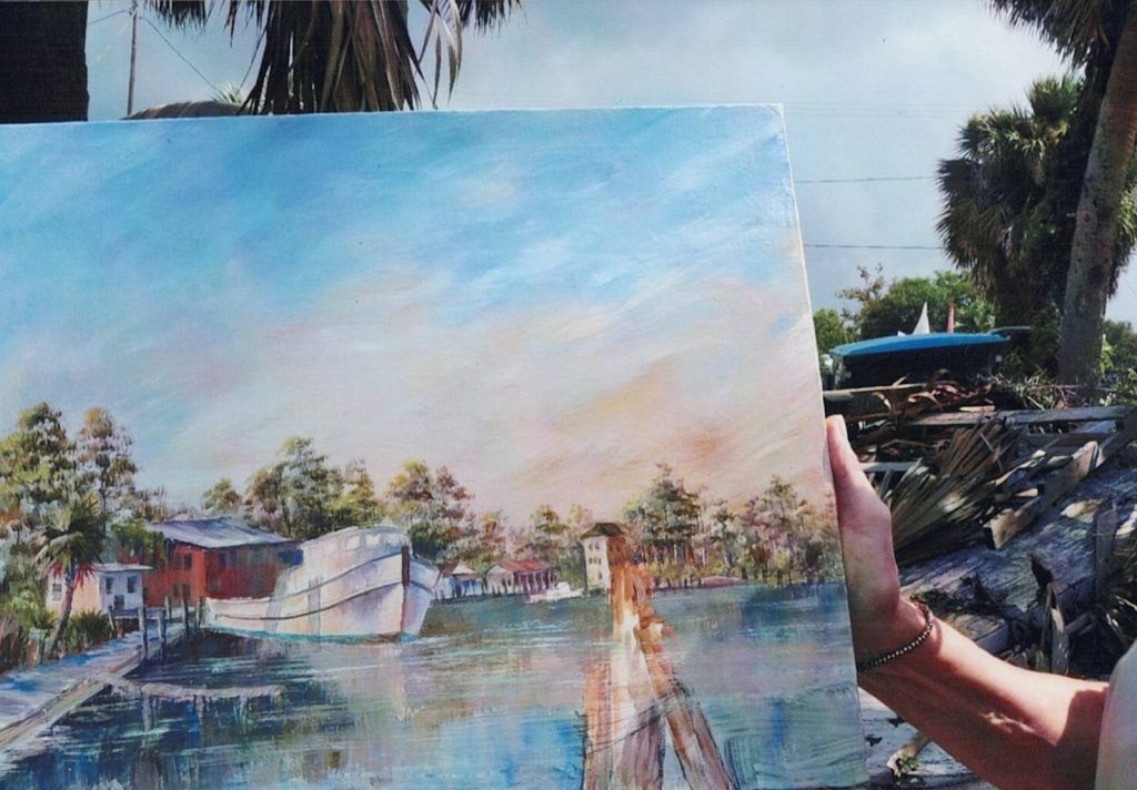 The next year, Donna invited me to attend another workshop. This one was held in Carrabelle, Florida and was all about oil painting. I had no experience with oils and did not think I would survive the allergy response I had to the supplies on the materials list. Somehow, my body adapted and I survived the weekend. The shrimp boat painting I completed on the harbor at the workshop still hangs in my house and oils is now my preferred medium for painting.